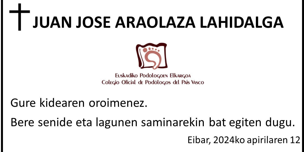 Atsekabe handiz, Juan Jose Araolaza Lahidalgaren memoria ohoratu nahi dugu, Euskadiko Podologoen Elkargo Ofizialeko lehen presidentea izan zena 1998an, 2024ko apirilaren 12an hil dena.